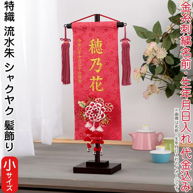 【送料無料】最安値に挑戦!2026年度新作 雛人形 名前旗 雛人形 村上鯉幟 室内飾り 特織 流水(小)朱 3-52 シャクヤク 髪飾り 濃桃房 スタンド付 金糸刺繍 生年月日 名前入代込 【2026年度新作】 mk-name-3-195-323-3-52