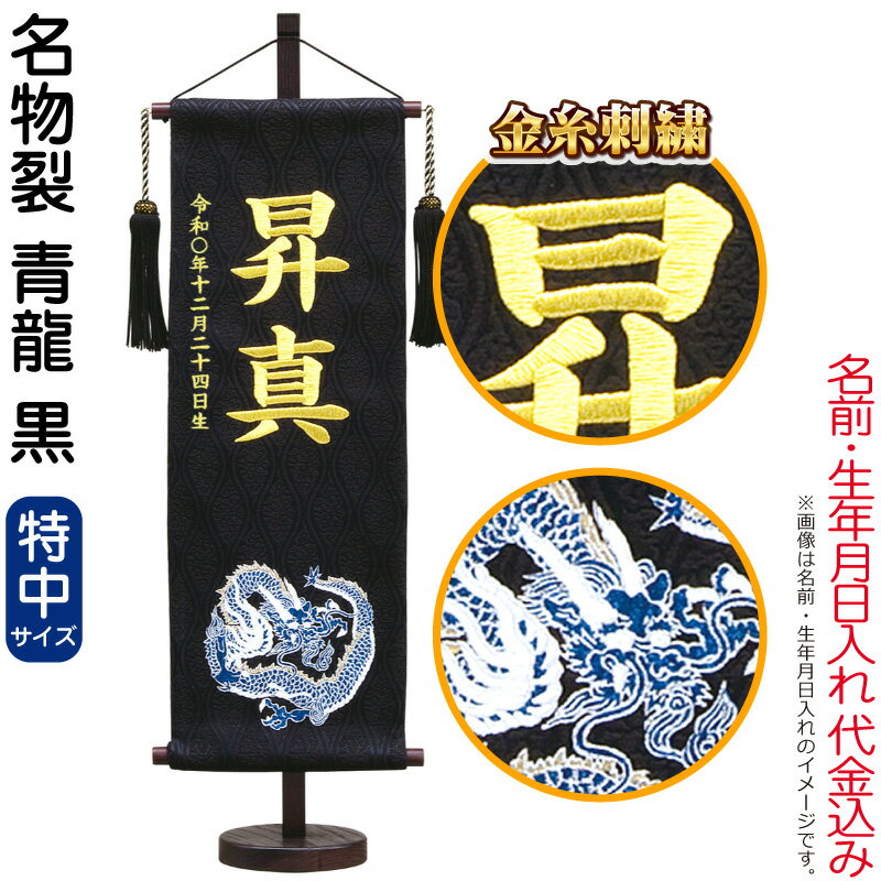 【送料無料】最安値に挑戦!2024年度新作 五月人形 五月人形 こいのぼり 名前旗 村上鯉 室内飾り 名物裂 特中 青龍 黒 黒房 スタンド付 金糸刺繍 生年月日 名前入れ代込 【2024年度新作】 mk-name5-159-295