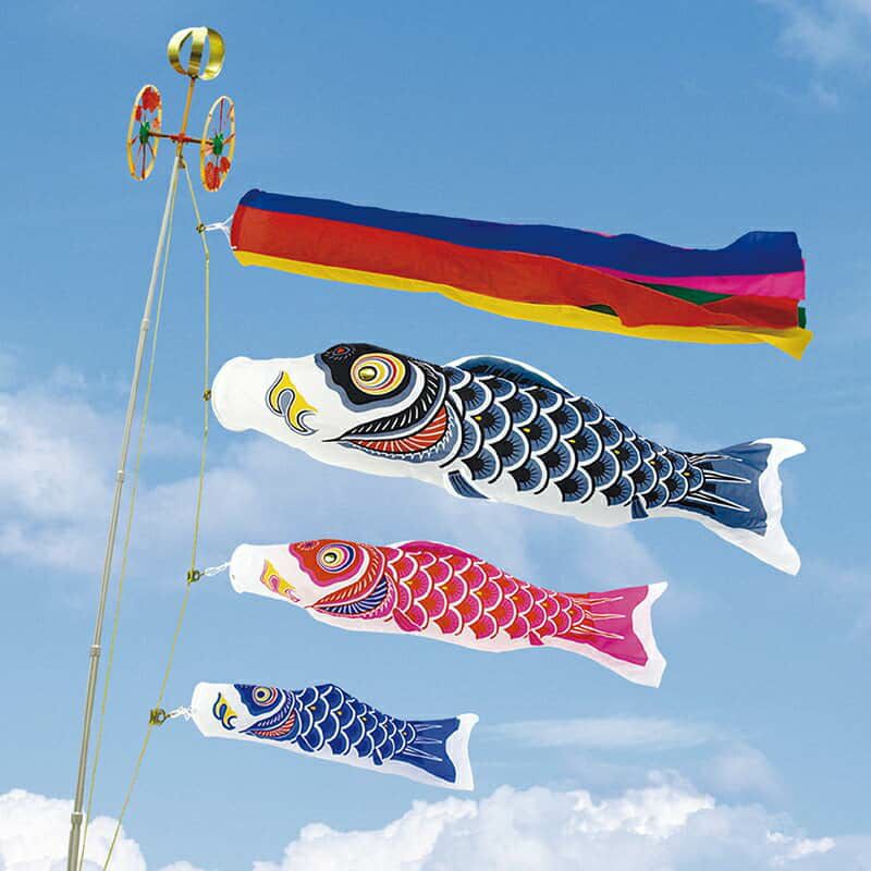 お子様の健やかな成長を願って、お部屋には五月人形を、お外には鯉のぼりを飾ります。鯉のぼりを飾り跡継ぎの存在を示すことで神様からの御加護やご近所の方々のご協力を得るといわれます。