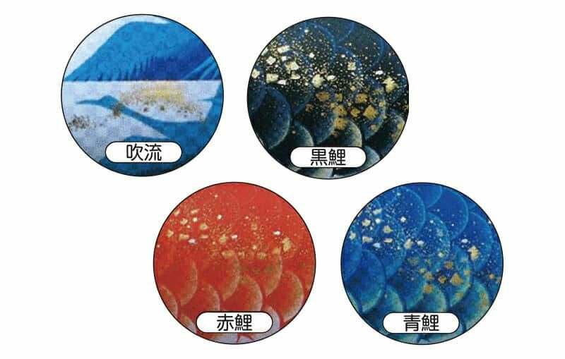 セットの鯉の中で、一番長い「黒鯉」の全長で選びます。本格的な大きい鯉のぼりもご用意しています。よく選ばれているのは4m、3mセットです。