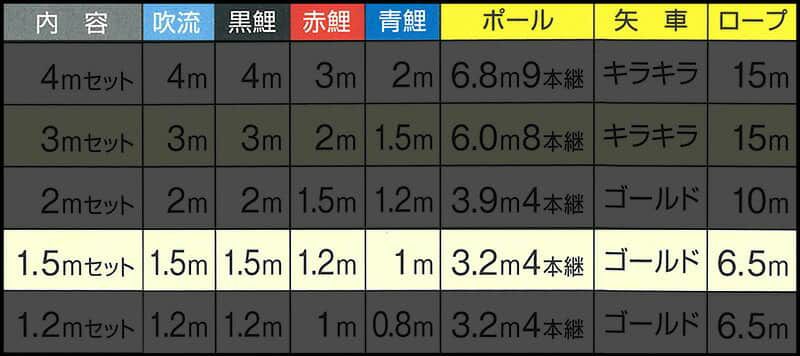 セットの鯉の中で、一番長い「黒鯉」の全長で選びます。マンションや戸建ての 2 階以上でもご利用いただくことができ、よく選ばれているのは1.5mセットです。