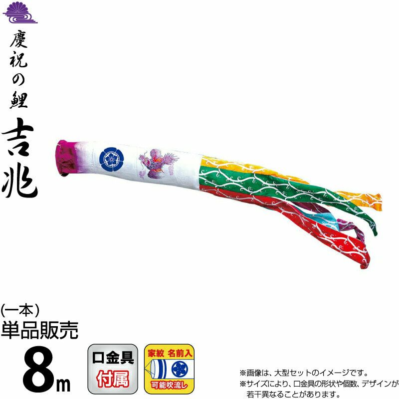 他の画像を見る 【送料無料】最安値に挑戦!2026年度新作 鯉のぼり こいのぼり 徳永鯉 鯉のぼり 単品 8m 風舞い吹流し 撥水加工 ポリエステルジャガード織生地 家紋・名前入れ可能 【2026年度新作】 000-880 メーカー希望小売価格 ¥ 106,500 (税込) ¥ 85,200 税込 カートに入れる お気に入りに登録する
